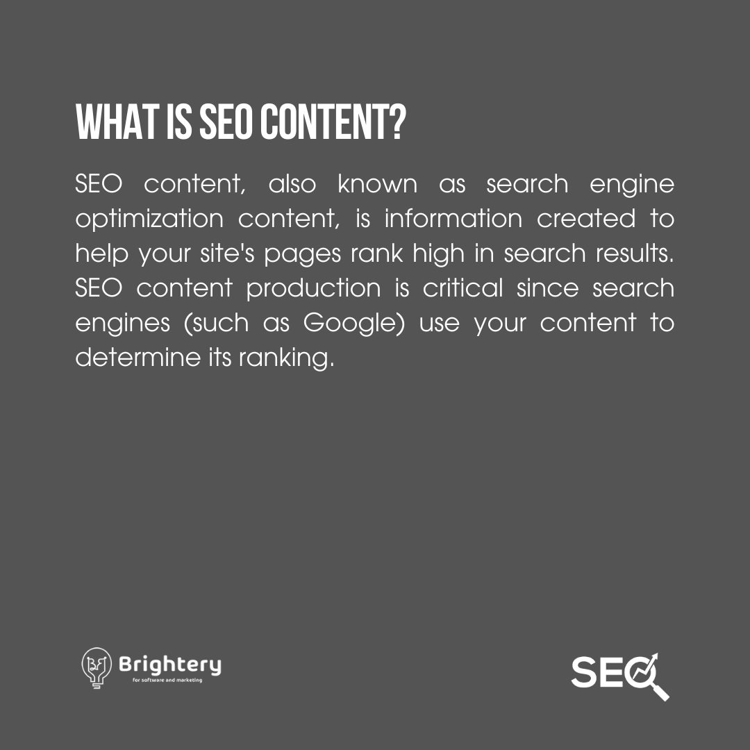 SEO content, also known as search engine optimization content, is information created to help your site's pages rank high in search results. SEO content production is critical since search engines (such as Google) use your content to determine its ranking.