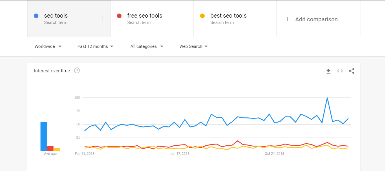 Let’s say, you run a software shop and you want to increase sales of this winter. When people search for a software you're targeting online, let's say "SEO TOOLS" do they search for free seo tools or seo tools? Compare the two using Google Trends.