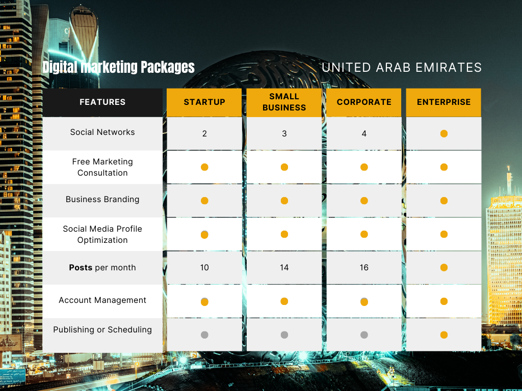 Let's check out the pricing of digital marketing packages in the United arab Emirates, and in Dubai.