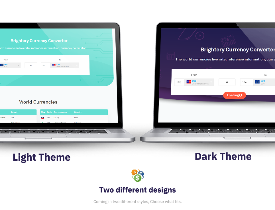 Brightery Currency converter, The best currency exchange script in 2019 you can find. Get easier today currency rate, dollar exchange rate, euro converter, Bitcoin currency converter, And over +160 Currencies. Brightery Currency Converter comes with more than one style, development, and support. It's the best choice for the best price.