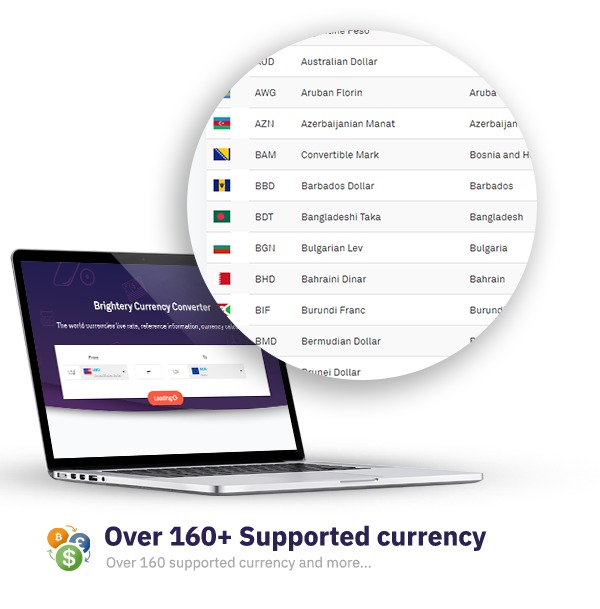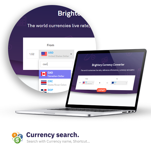 Brightery Currency converter, The best currency exchange script in 2019 you can find. Get easier today currency rate, dollar exchange rate, euro converter, Bitcoin currency converter, And over +160 Currencies.