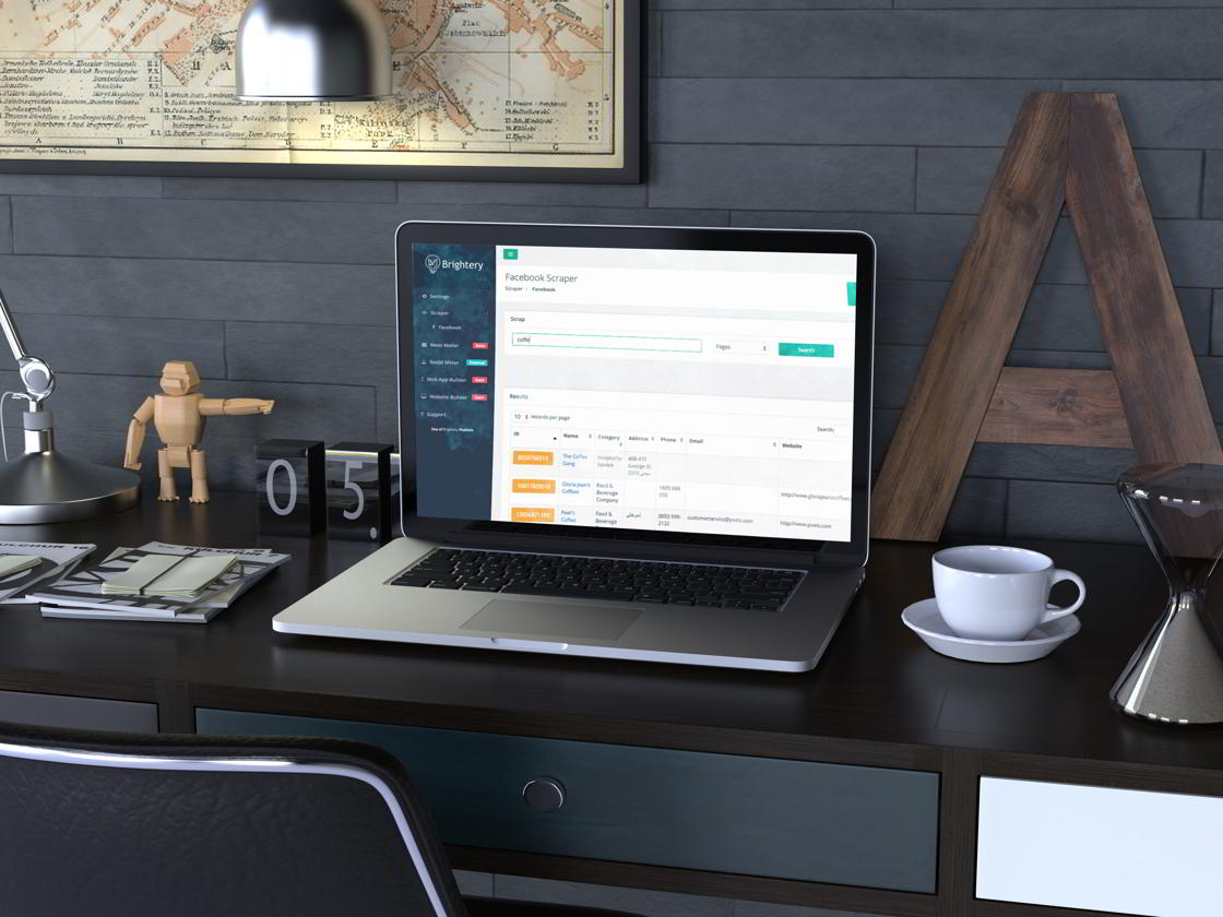 Brightery Mega Marketing is a software that help you scrape data from the most powerful platforms like Facebook, FourSquare, Yellow Pages, Twitter and more. You can also scrap facebook group/pages members and user data, it could even scrape public and real user emails.